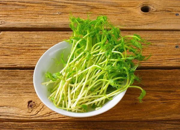 r豌豆芽也被叫做“豌豆苗”“豌豆尖”、“龙须菜”、“龙须苗”,它味道清香、质地鲜嫩,不仅可以入膳,还有一定的医疗价值。