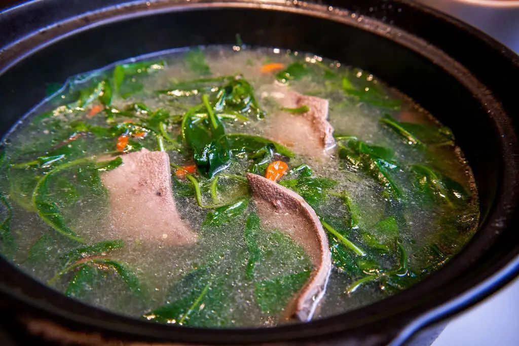 做法:将猪肝洗净,切成薄片,用豆粉调拌后置油锅炒熟,铲出备用;枸杞叶、桑叶洗净后入锅,再加水,旺火煮沸后将加入炒好的猪肝,改文火煨半小时,加食盐调味后即成。功效:有养肝明目、除眼涩、清热止渴之效。